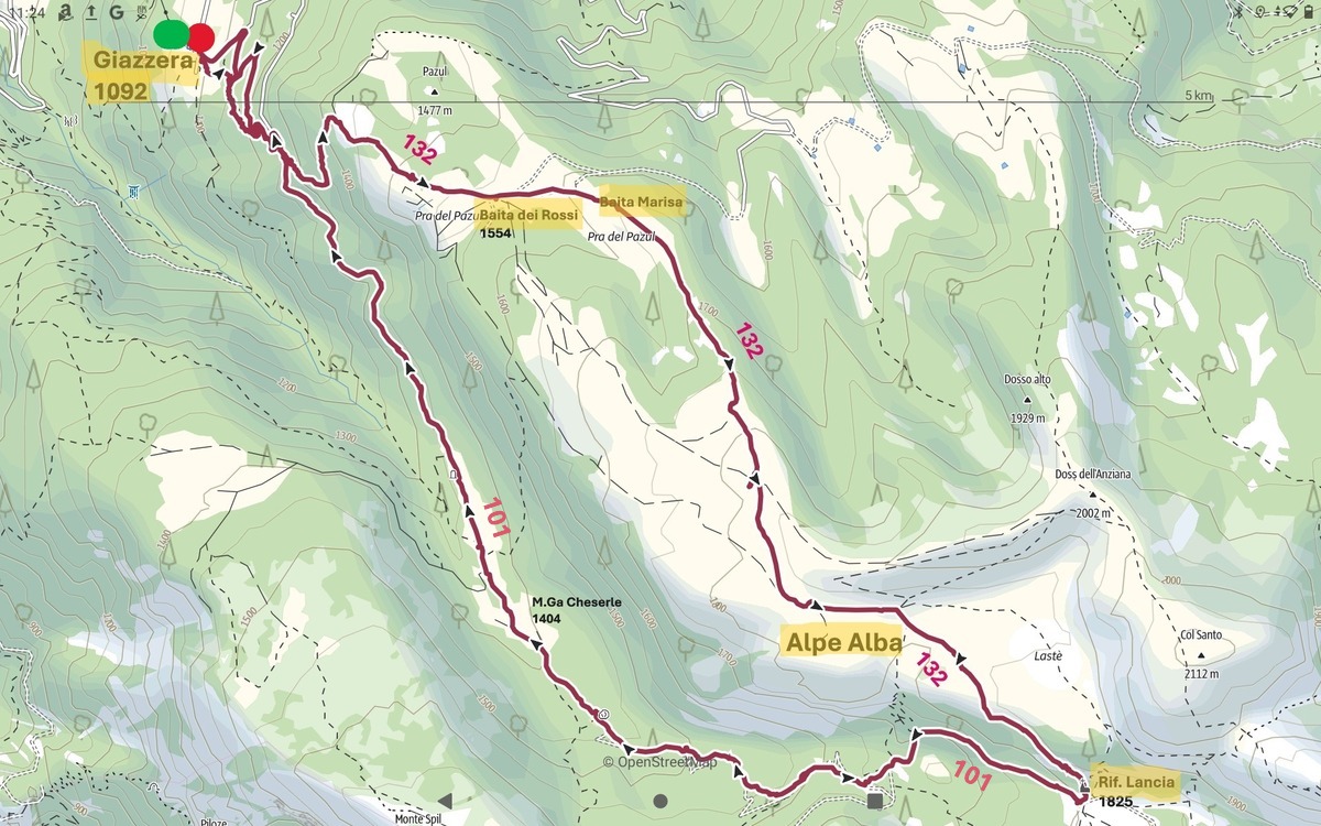Da Giazzera all'Alpe Alba e rifugio Lancia.