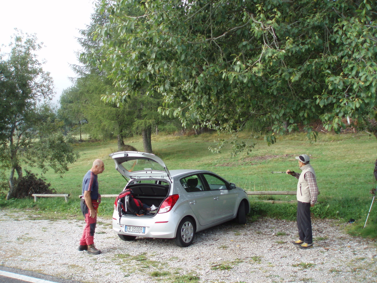 Lasciata l’auto nella verde conca delle Viote (1550m), ed ecco che ben decisi a non lasciarci intimidire da un po’ di nuvole a sud attraversiamo i prati della torbiera fino ad intercettare il sentiero 636 (20min) che risale dai “Fogolari”, il nostro sentiero maestro per le tre cime del Bondone.