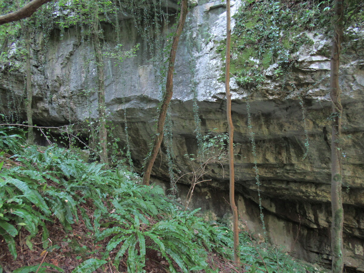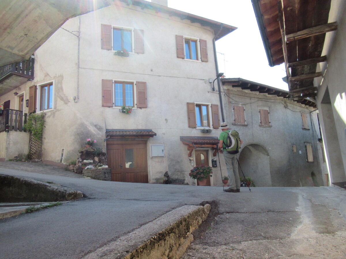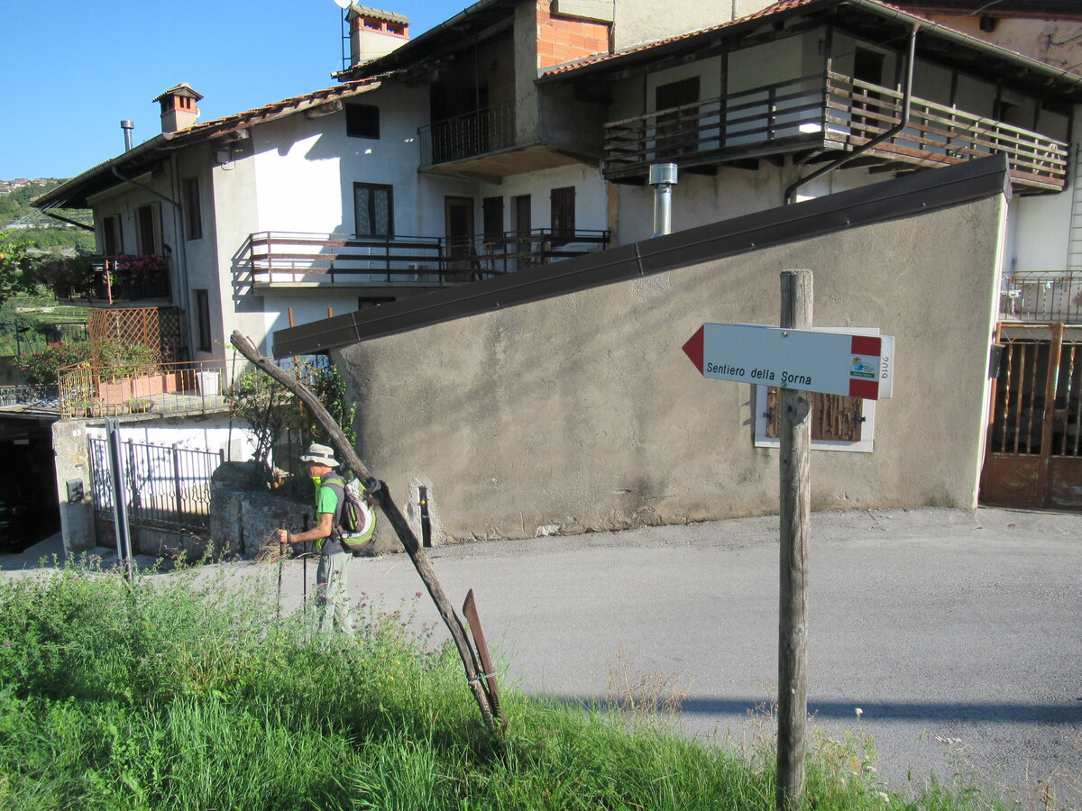 Invece d’arrampicare su per qualche erto pendio, eccoci qui tra le abitazioni della piccola contrada di Zembrae (450m) a calare fin da subito sull’acciottolata e scivolosa mulattiera che nel bel mezzo del bosco porta dritti al primo bivio del giorno (20min), dove con una breve digressione alla nostra destra risaliamo alla suggestiva grotta della “Madonna del Pontirol”, una chicca sull’itinerario che merita senz’altro uno sguardo prima di tornare sul circuito per le “miniere della Sorna”. Ed è così che nell’ombra del bosco, passando dallo sterrato al tratto gradinato c’immergiamo sempre più nell’oscura forra del torrente Sorna. Un affascinante paesaggio da foresta tropicale dove tra muschio, felci e scrosciare d’acqua proseguiamo sul sentiero che a ridosso delle aggettanti pareti porta nel frattempo ad attraversare una passerella sul torrente, un suggestivo passaggio questo dove poter ammirare spumeggianti cascatelle e cristalline pozze, mentre discesa da lì a poco una verticale scaletta, ecco che il sentiero sempre più stretto e angusto porta dritti all’imbocco della miniera, un buio tunnel dal basso soffitto che ben testimonia il duro lavoro di quanti qui per vivere strappavano il carbone a forza di braccia e piccone. Giusto il tempo di respirare un po’ d’aria di miniera, e proseguendo paralleli al corso d’acqua arriviamo là dove difronte a un guado ogni traccia si perde nella selvaggia vegetazione, quota minima dell’intero itinerario dove al dubbio su quel che ci aspetta preferiamo la certezza del sentiero già fatto (270m, 30min). Ed è così che rinunciando a malincuore al fascino dell’avventura, sotto il timoroso sguardo di raganelle e salamandre risaliamo controcorrente fin su al primo bivio incontrato al mattino, dove stavolta senza tentennamenti prendiamo l’indicazione per il vicino “Pont del Diaol” (320m, 40min), un arco in pietra a tutto sesto che lì sospeso sull’oscuro orrido non poteva che essere opera di un essere diabolico. Sarà l’aura mistica che questo luogo emana, oppure semplicemente l’ora ancora favorevole, fatto sta che invece di risalire al nostro punto di partenza, al di là del ponte proseguiamo sul stradello che a destra sale nel bosco fin a sbucare ai piedi dell’abitato di Cazzano (460m, 25min), fortunata frazione di Brentonico baciata dal sole che dall’alto del suo dosso sorveglia l’ordinata distesa di vigneti e frutteti che s’affacciano a mezzogiorno. Rimanendo sotto l’abitato di Cazzano e senza mai abbandonare l’indicazione del “sentiero della Sorna”, a sinistra proseguiamo ora sul stradello cementato che fiancheggiato da un muretto a secco s’infila poi nuovamente nel bosco, un nuovo cambio di scenario dove al di là di un guado ci attende la breve deviazione per il vicino “Pont dei Tani”, altro suggestivo ponte che ancora oggi collega efficacemente le opposte sponde del Sorna (320m, 20min). Soddisfatta la curiosità, torniamo brevemente sui nostri passi per riprendere la pista che sale a Cornè (466m, 20min), altro solare centro abitato dell’altopiano da considerare come ideale punto di partenza per una futura escursione nel canyon della Sorna.