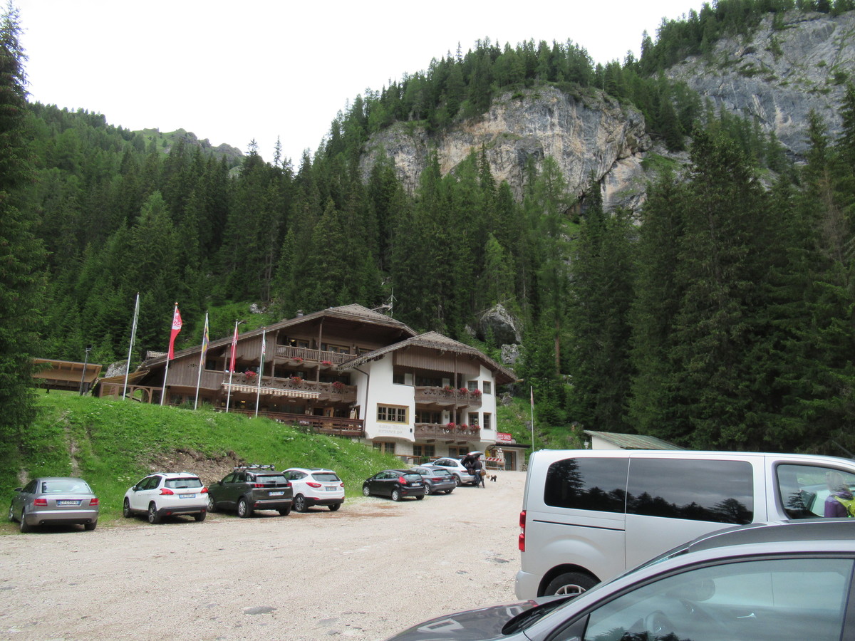 Lasciata l’auto a Pian Trevisan (1681m), proprio difronte all’albergo “Villetta Maria” imbocchiamo il sentiero 619, dove con le imponenti piramidi del Gan Vernel e della Roda de Mulon ben in vista dinnanzi a noi, ci immergiamo nell’ombroso bosco e attraversiamo il ponticello sull’Avisio. Al di là del torrente la storica “Strada dei Rusci” s’inerpica oltre la fascia boscata fino a risalire il risalto roccioso del Pian Scalet (2035m, ore1), porta d’ingresso dell’ampia conca della Ciamorciàa, una sorta di palcoscenico roccioso nel bel mezzo del grandioso anfiteatro dolomitico, dove col passare dei millenni, il ruscellare dell’acqua che senza tregua scivola giù dal sovrastante ghiacciaio ha scavato la via nella nuda roccia, un solco che tra vasche, cascatelle e meandri ha dato vita ad un armonioso e suggestivo giardino giapponese. Calpestando magri tappetti erbosi, tra mughi, massi erratici e vecchi ruderi della Grande Guerra, al bivio di Col Baranchie (2205m, ore1) tralasciamo l’indicazione sinistra del 618 per il lago Fedaia e continuiamo dritti verso est sul 619, dove superato un canalino ancora innevato e traversato un costone roccioso a tratti attrezzato, più in alto perveniamo a “Forcella Col de Bous” (2438m, ore1), un strategico valico dove a ridosso delle rocce possiamo osservare i resti delle postazioni austriache e dei ricoveri militari. Col ghiacciaio che pende sopra le nostre teste, a questo punto non resta che inerpicarci tra roccette e gialli papaveri alpini seguendo l’erto e aspro sentiero 606, che pressoché parallelo alla linea della dismessa bidonvia, dritto a monte porta sul terrazzo del rifugio “Pian dei Fiacconi”, posto e momento giusto per sedersi ad un tavolo e fare gli onori alla cucina di casa, mentre attraverso i vetri dell’ampia finestra ci deliziamo con la bella vista sul Sella, il Sasso Lungo e le smeraldine acque del lago di Fedaia (2626m, 40min).