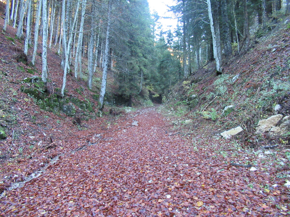 Dopo aver riempito gli occhi con tanta meraviglia, non rimane che entrare nel rifugio Prima Neve e soddisfare anche l’appetito, prima di rimettere gli zaini in spalla e imboccare la via di rientro calando direttamente giù dall’erboso pendio meridionale del monte. Una scoscesa discesa a ruota libera che giù in basso termina sulla strada forestale (20min), dove a questo punto diventa facile andar a chiudere il nostro periplo al punto di partenza (15min).