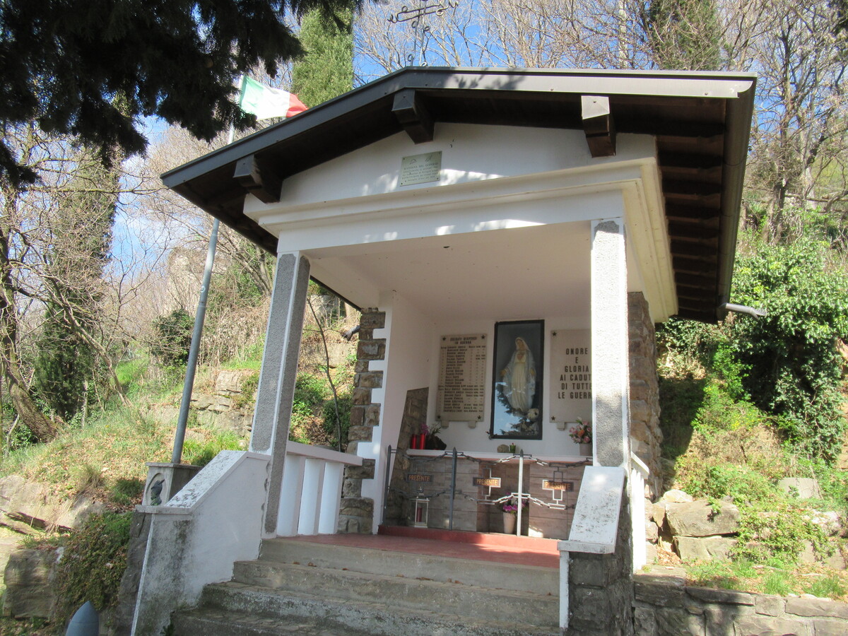 A Provaglio d'Iseo (330m), in piazza dei portici è sufficiente alzar la testa per mettere a fuoco una chiesetta ben aggrappata alla parete del monte Cognolo e una bianca Croce che poco in disparte svetta su uno sperone roccioso, due monumenti religiosi dedicati alla “Madonna del Corno” che lassù sfidano la gravità e promettono viste da sogno.